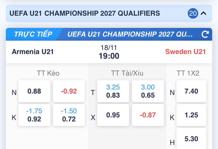 2. Đính kèm ảnh chụp màn hình hiển thị tỷ lệ cược & rõ 2 đội, ghi rõ đội chọn.